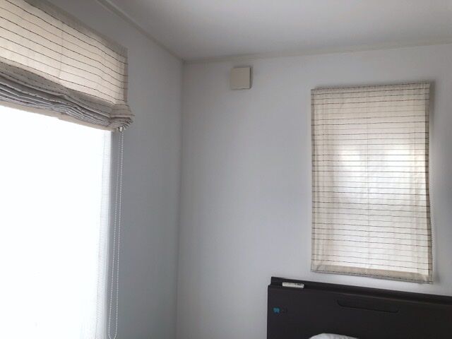窓枠より一回り大きく作ったシェードを枠上の壁に取り付けて窓枠を覆い隠す付け方。