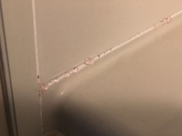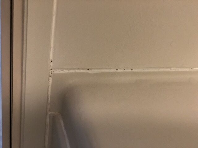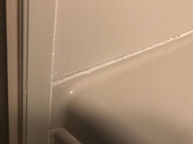 カビ専用のハイターを長時間放置してもとれない、お風呂場のパッキンについた黒カビ。