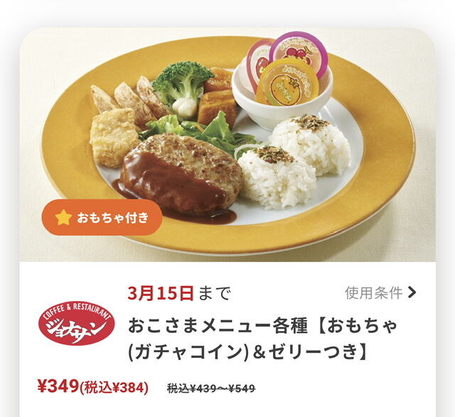 いつもお世話になっております、デニーズ。おもちゃは付かないんだけど、