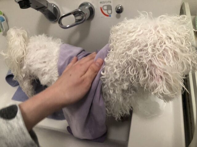 ここは手早くしないと、「ブルブルブルッッ」をされると辺り一面水浸しに